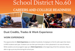 Parents and staff are reminded of the many career and work exploration opportunities in School District 60.  Please click on this link to find out more.