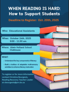 “When Reading is Hard:  How to Support Students” for Educational Assistants – October 24, 2025