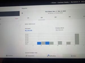 Below, the image represents the wealth of information that can be gleaned from the “Square” point of sale system. This includes daily, weekly, and monthly tracking of sales, the most popular items sold, etc.