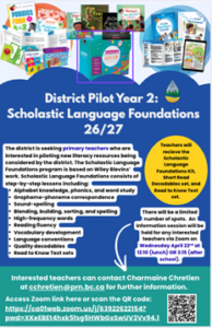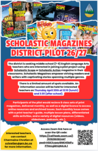 We continue to work with groups of teachers this year and would like to expand our pilots to others for the 2026/27 school year.  Please find attached informational posters that include the dates for informational Zoom meetings about each pilot project.